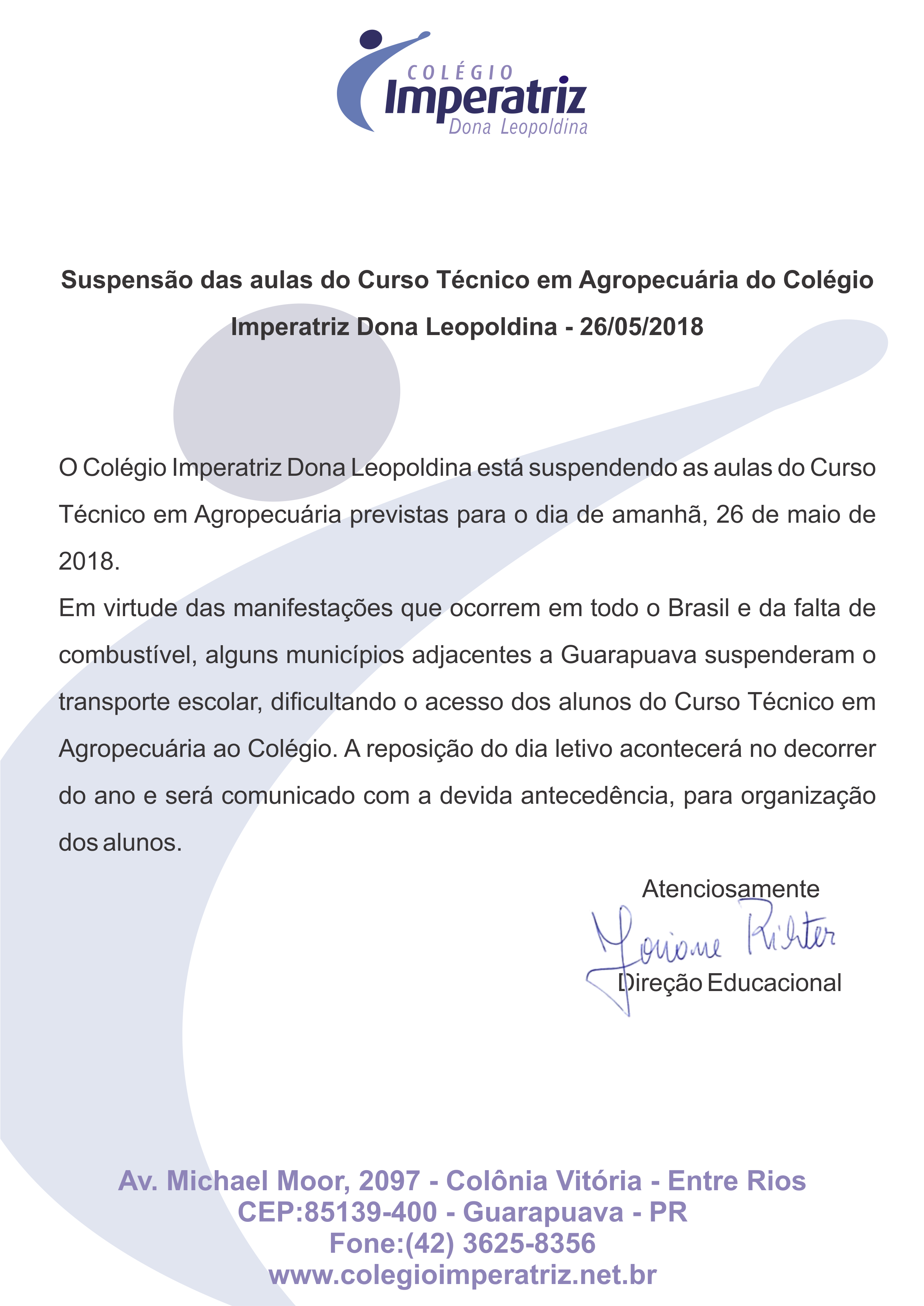 Suspensão das aulas do Curso Técnico em Agropecuária