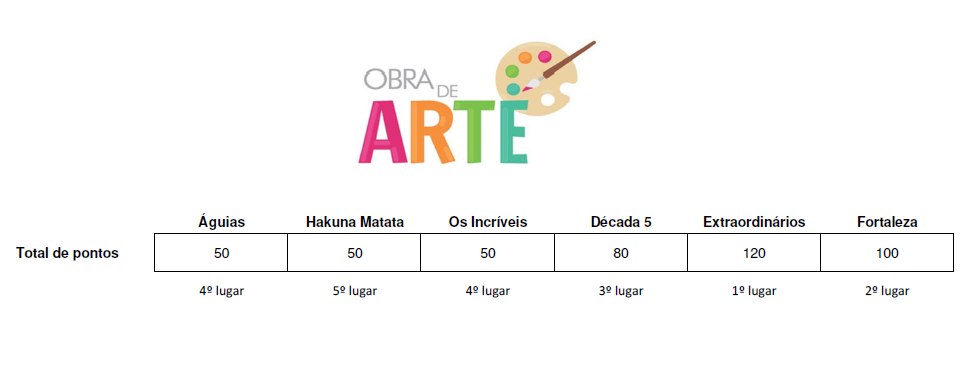 E ao entardecer de hoje recebemos as belíssimas obras de arte sobre a história dos 50 anos do Colégio Imperatriz. Foi uma avaliação difícil para aos jurados. A pontuação ficou assim distribuída: