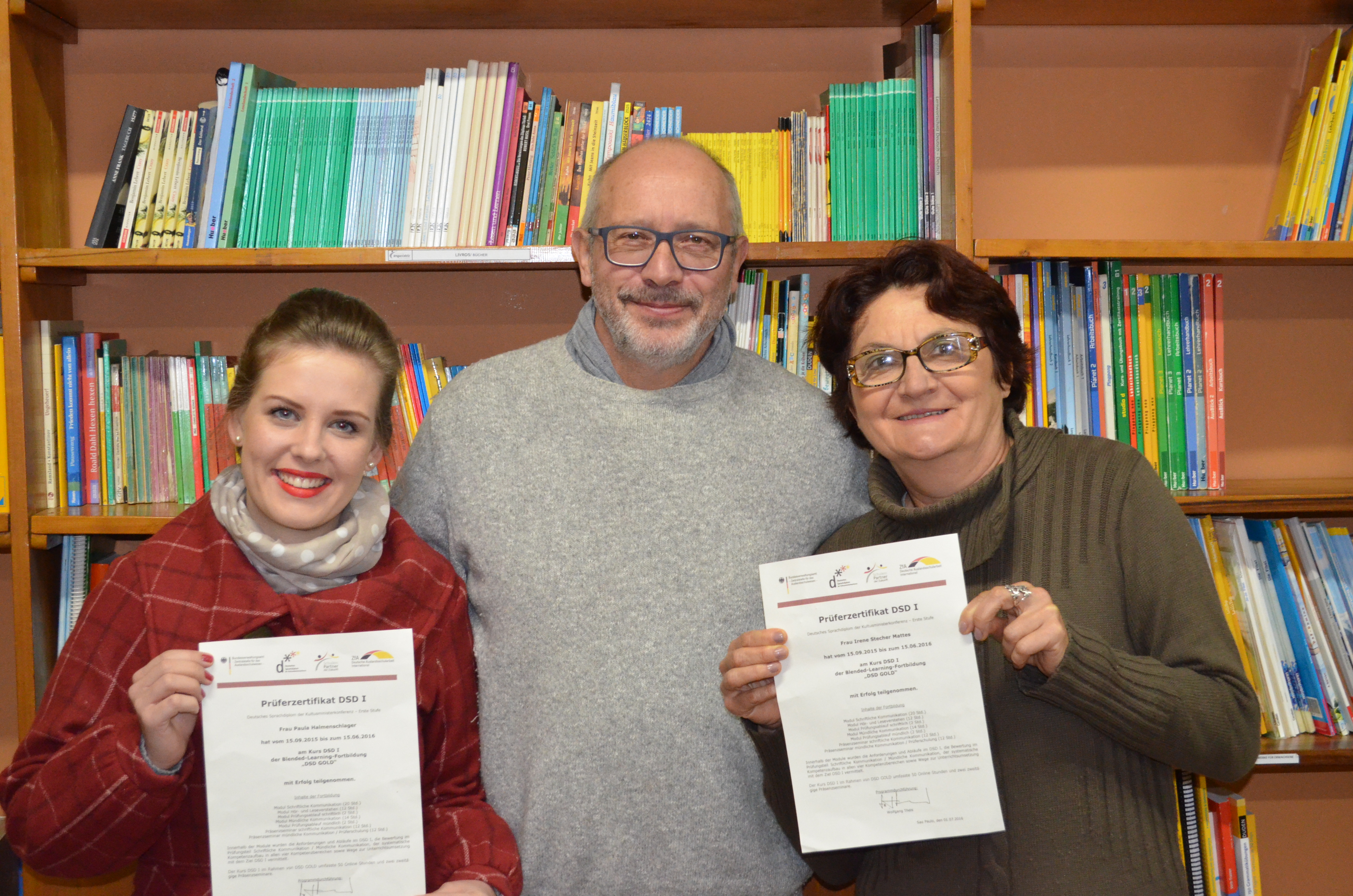 DSD Gold é um curso online e presencial, oferecido pela ZfA (Agência Central para as Escolas no Exterior) de setembro de 2015 a junho de 2016 a professores de DSD I. Os participantes aprofundaram as habilidades das provas de DSD I e quem completou o curso com sucesso, poderá oficialmente conduzir e avaliar a prova oral de DSD I sem a presença do coordenador geral da Alemanha. Da nossa escola tiveram essa formação as professoras Paula Halmenschlager e Irene Mattes.