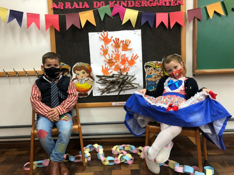 Nos momentos de aulas presenciais, para que todos pudessem curtir as festividades com segurança a data foi comemorada em sala de aula. As crianças que participam da atividade extraclasse Kindercenter puderam participar de tardes juninas entre os dias 28 de junho e 2 de julho. Os alunos vieram trajados com roupas típicas. Além disso, o lanche também foi alguma comida típica desta data festiva e em função dos protocolos estabelecidos, ocorreu de forma individualizada. Durante estas tardes, as crianças dançaram quadrilha, participaram do desfile de trajes e realizaram brincadeiras, como a pescaria.
