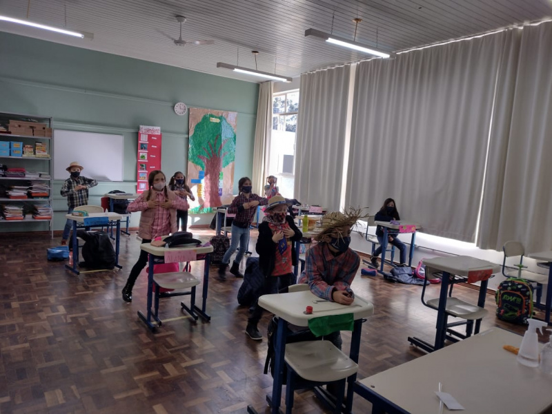Os alunos dos Anos Iniciais, Finais e Ensino Médio também puderam festejar. Esses foram convidados a virem trajados de caipiras no dia 02 de julho Já a comemoração para as turmas regulares da Educação Infantil ocorreu no dia 06 de julho. Para esses dias, os estudantes também puderam trazer um lanche típico da data comemorativa como pipoca, pé de moleque e outras delícias. Durante a manhã as crianças também dançaram danças típicas em sala de aula com suas professoras, tomando os devidos cuidados de distanciamento. Para os que não conseguiram trazer um lanche especial para esse dia, o cardápio foi especial na cantina com cachorro quente, canjica e bolo de fubá, além de músicas típicas no intervalo.