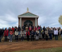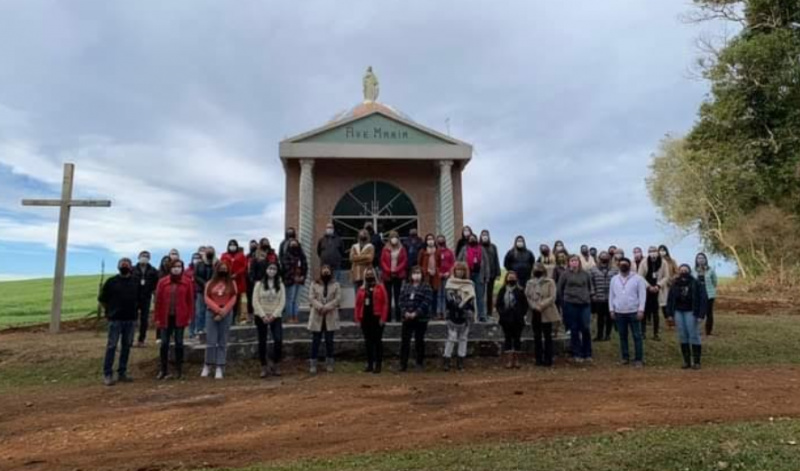 Após as atividades com o livreto e o tour virtual, professores, direção e coordenadoras pedagógicas realizaram uma visitação pelos principais pontos históricos das colônias de Entre Rios. Entre os pontos visitados, destaca-se o demarco 1, que foi o ponto de partida para a divisão e organização das colônias e dos lotes. Também, a “Marienkapelle” (Capela de Maria), local que referencia a fé dos imigrantes suábios. E, como ponto final do tour, a Igreja da Colônia Socorro, única que ainda conserva o formato original, construída pelos imigrantes e que hoje está sendo restaurada pela comunidade.